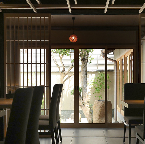 中庭を一望できる店内