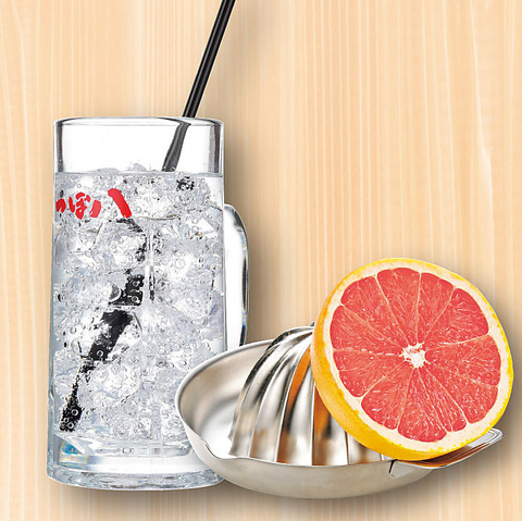 ◆メガ生搾りルビーグレープフルーツサワー:869円(税込)◆【濃いめ】:759円(税込)◆【濃いめ】メガ:979円(税込)/※画像は「メガ」です。