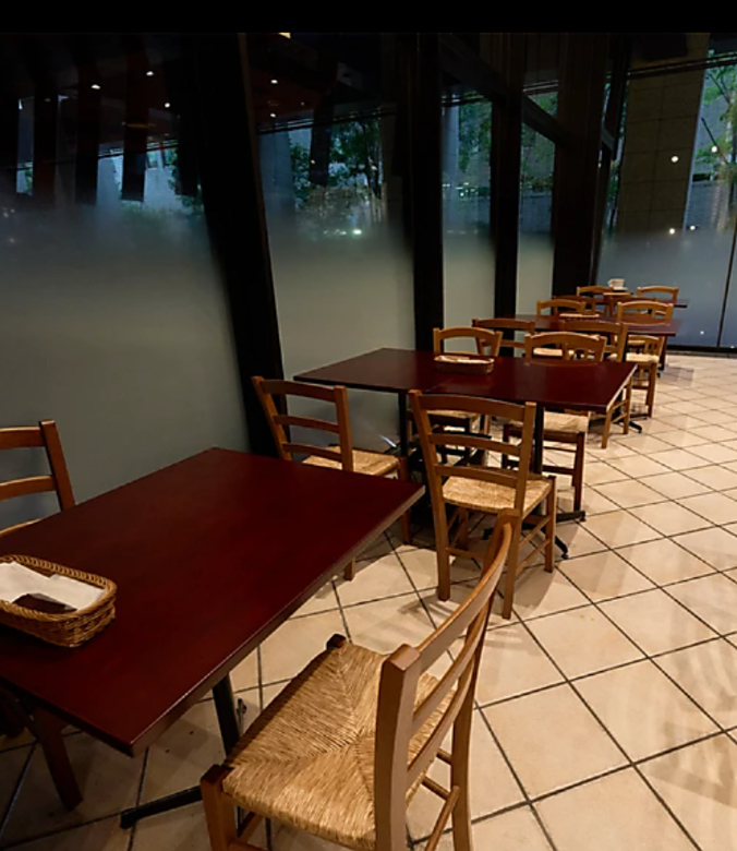 当店の外観は、洗練されたガラス張りのデザインが印象的。都会的でありながら、自然光が差し込む明るい雰囲気を醸し出しています。都会の喧騒を忘れ、ゆったりとした時間を過ごせます。