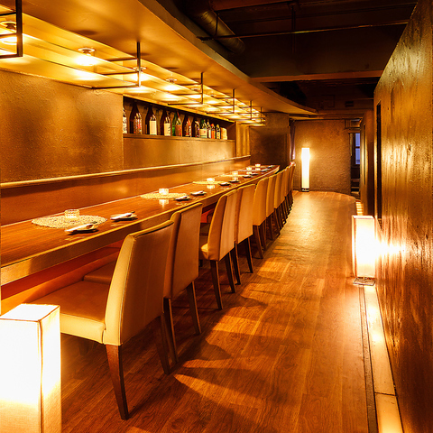 格式張らずに仲間との距離の近さを感じることができやすいカウンター席。最大10名様までご利用いただけます。ご利用の際はご予約時にお申しつけください。季節感が楽しめる素材の味を活かした料理と特別な空間でおもてなしいたします。