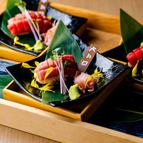 本鮪の赤身を厳選して盛り合わせ。旨みが凝縮されたしっとりとした味わいは、脂身とはまた違う上品な余韻。日本酒とも好相性の贅沢な一皿です。
