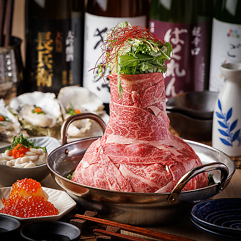 インパクトのある見た目が魅力の当店自慢【和牛タワー鍋】が入った期間限定コースです。牛肉の色合いや脂の乗りも美しく、見ているだけでも食欲をそそる逸品。季節の食材も全7品含まれた宴会向きのコースです♪この機会に是非お試しください!