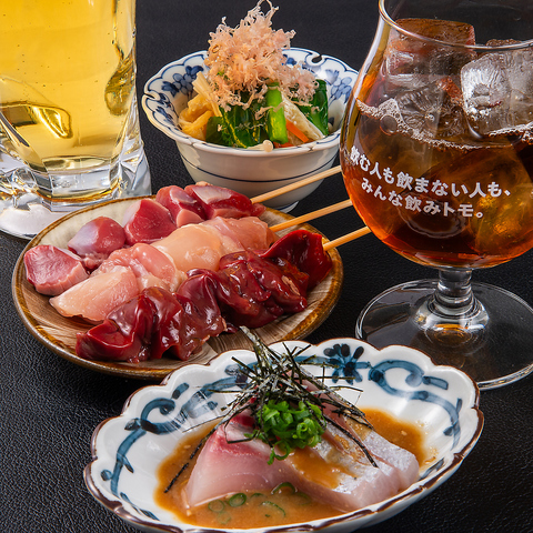 焼鳥と合わせて楽しんでいただける多彩なアラカルトメニューを400円(税込)からご用意しております。旬の食材は、九州の市場から新鮮なものを直送!本日のおすすめとしてご提供いたします。刺身、焼き物、揚げ物など、素材の持つ旨味を最大限に引き出す調理法でご提供いたします。