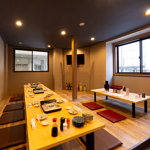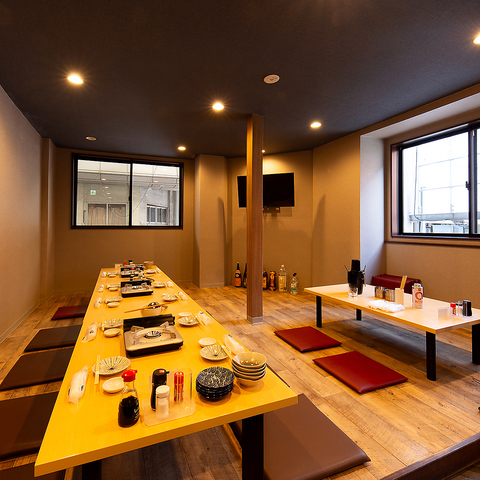 2階の座敷は、広々とした空間でご家族や友人との特別な時間を過ごすのに最適です★ 最大16名まで利用でき、仲間内で盛り上がること間違いなし! スポーツ観戦ができるTVもあり、試合を楽しみながらの集まりにピッタリ♪ 大人数での宴会にぴったりな環境が整っております。大人数でのご予約は、コースのご予約がオススメです!是非ご利用下さい。