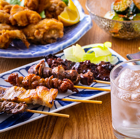 当店名物のひとつ!一本一本を手打ちで仕上げる串焼は、外はカリッと香ばしく、中はジューシーな仕上がり。5種盛または8種盛よりお選びいただけるおまかせ盛り合わせは、その日のおすすめ串を堪能できる当店の一押しメニュー!焼き鳥を中心に変わり串も揃えており、自家製のタレや塩が素材の旨味をさらに引き立てます◎
