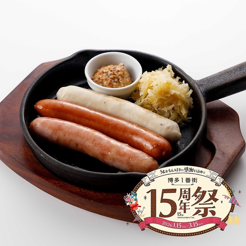 15周年を記念して「糸島いきさん牧場 ソーセージ3種盛合せ」を特別価格1,500円(税込)でご提供!