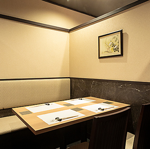 静かな環境で大切なひとときを過ごせる完全個室席。落ち着いた和のインテリアが、心安らぐ空間を演出し、特別な会食に最適です。