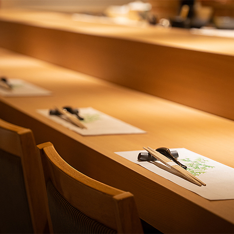 洗練された雰囲気が居心地の良いカウンター席で職人技を愉しみながら、至福のひと時をお過ごしください。