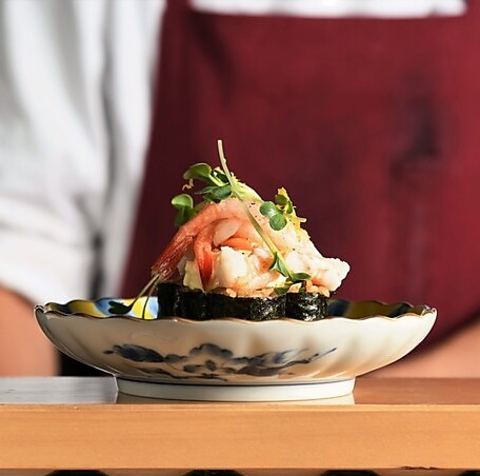 ツマミにもシメにも楽しめる「あて巻き」を20種ほどご用意してます♪その中でも『こぼれあて巻き』が特にオススメです!映えて美味しく老若男女とわずサクッと楽しめます♪