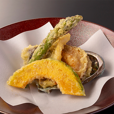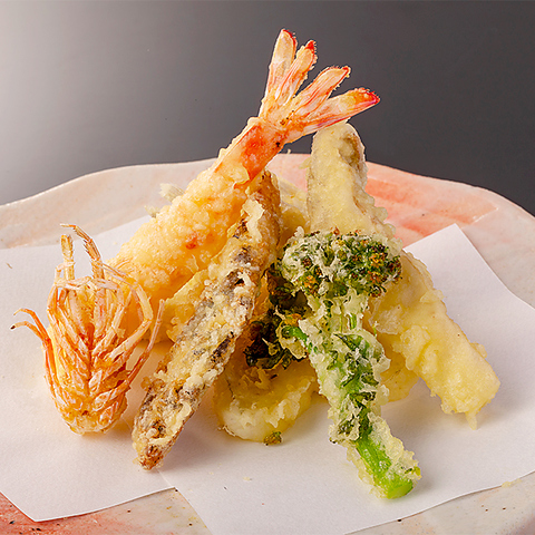 その季節に最も美味しい食材を厳選し、心を込めて揚げた極上の天ぷらをお楽しみください。海の幸の豊かな磯の香りや、野菜の新鮮な旨味が広がります。見た目の美しさや職人の技術はもちろん、特に口に入れた瞬間の温度や熟成、食感のバランスにもこだわってお届けいたします。