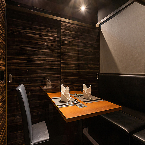 完全個室は2名様からご利用いただけます。大切な方とのプライベートなひとときを、静かな空間で心ゆくまでお楽しみください。周囲を気にせず、特別な会話や食事を交わす贅沢な時間を提供します。
