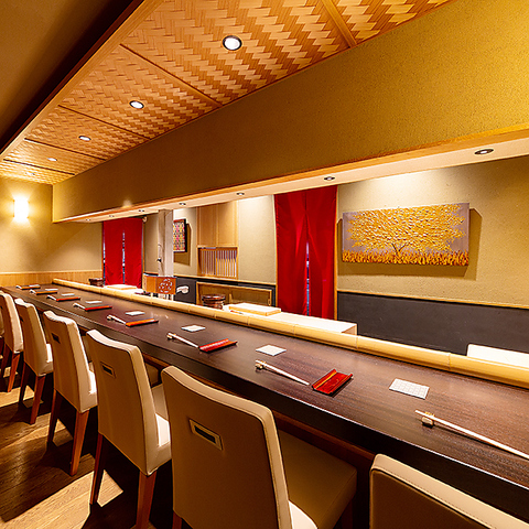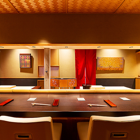 温かみのある照明が照らす、落ち着いた雰囲気の和モダンな空間。ゆったりと寛げる上質な空間は、大切な方との特別なひとときに最適です。臨場感あふれるカウンター席や、接待・会食にも最適な完全個室をご用意しておりますので、シーンに合わせてご利用いただけます♪