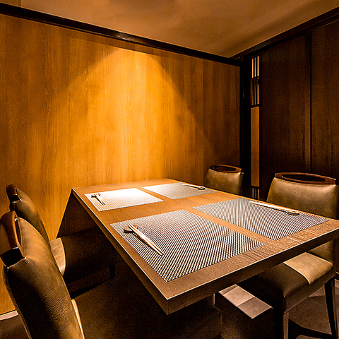 接待や記念日など、大切な方とのお食事に最適な完全個室を完備しております。プライベートな空間で、周りを気にすることなく心ゆくまでお食事と会話をお楽しみいただけます。落ち着いた和の雰囲気で、上質なひとときをお過ごしください。