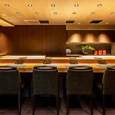 8席あるカウンター席は、職人の技を目の前で楽しめる特等席です♪お一人様でのご利用はもちろん、大切な方との特別な時間にも最適です。新鮮なネタが目の前で美しい一貫に仕上がる様子を五感でお楽しみください。