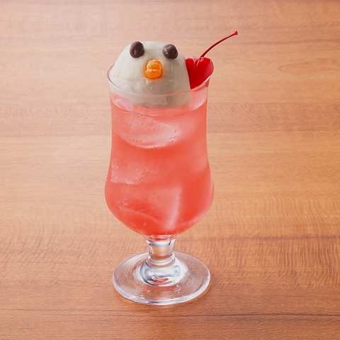 幸の鳥ではカラフルな「ひよこアイスのクリームソーダ」などスイーツ系ドリンクも充実♪映えにも良し、推し活にも良し、自分へのご褒美にも良し♪その他にもアルコールやオーダー式ドリンクバーなどをご用意しており、ランチ&カフェタイム&飲み会メニューも充実◎