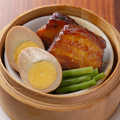 何を注文しようか迷われたら沖縄料理の定番品『ラフテー』がおすすめ!大きくカットした豚肉のかたまりを、醤油・砂糖・出汁・隠し味の泡盛とともにじっくりコトコト煮込んでお作りしました。お箸で簡単に切れるほど柔らかく、舌の上でとろっととろけます。