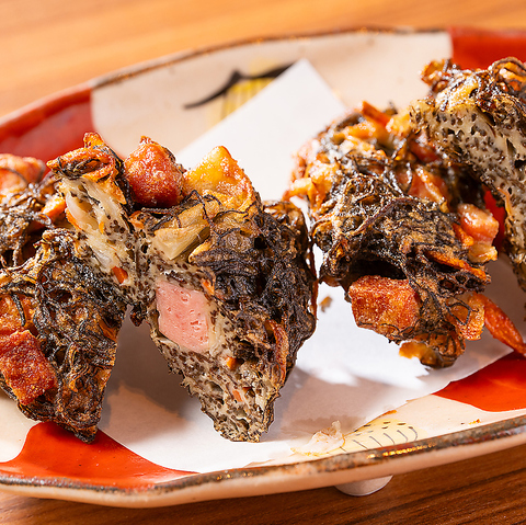 沖縄のもずくをカリッとした食感のかき揚げにしました!