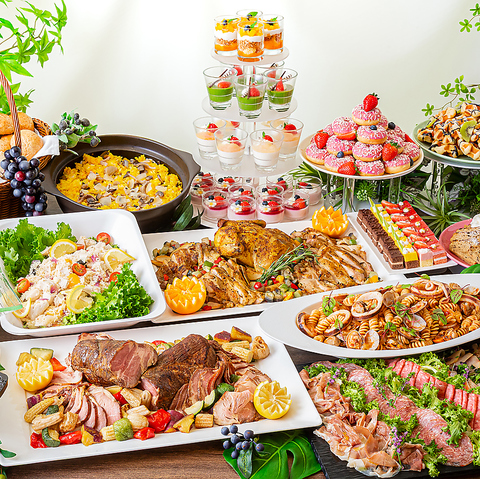 立食・着席両方に対応可能なビュッフェスタイル、着席希望の方に最適な大皿テーブルシェアプランをご用意!