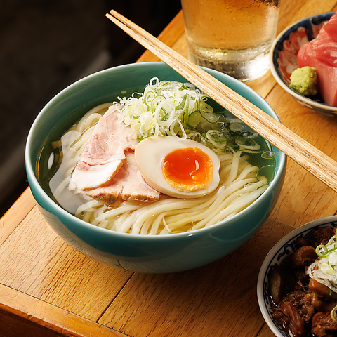 食べて飲んだあとにはラーメンでもうどんでもないオリジナルの「自家製麺」をどうぞ♪香り豊かな出汁とあっさりとした味わいで、ぺろりと召し上がれます。季節ごとに変わる様々なバリエーションをお楽しみください。