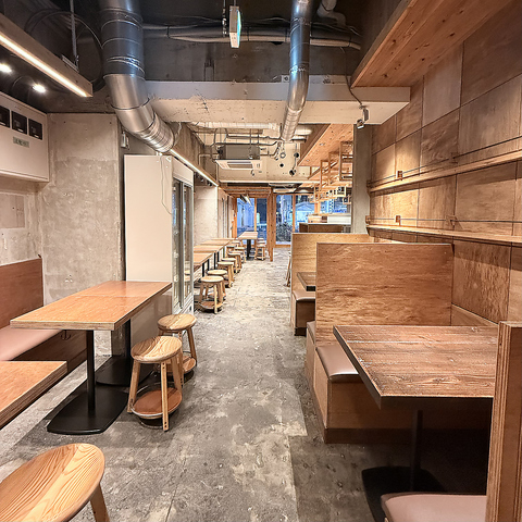 【テーブル席】グループで利用しやすいテーブル席をご用意しており、少人数のお集まりにもぴったりです♪木を基調とした清潔感のある店内でゆったりお過ごしいただけます。人数に合わせたお席へご案内いたしますので、女子会や職場の飲み会にも是非ご利用ください♪