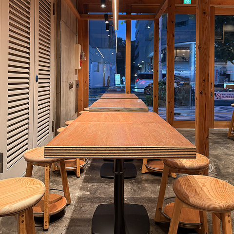 【テーブル席】グループで利用しやすいテーブル席をご用意しており、少人数のお集まりにもぴったりです♪木を基調とした清潔感のある店内でゆったりお過ごしいただけます。人数に合わせたお席へご案内いたしますので、女子会や職場の飲み会にも是非ご利用ください♪