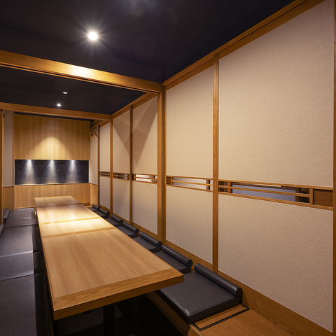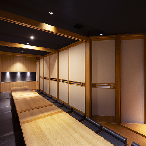 【扉付き個室】個室席を多数ご用意しております。2名様~6名様向けの少人数様個室、7名様~22名様向け個室や46名様までご案内可能な団体様用完全個室も完備しております◎お仕事帰りの一杯から大人数様でのご宴会まで、幅広いシーンに対応します。宴会,飲み会,接待,歓送迎会,同窓会,二次会,打ち上げに是非ご利用ください。