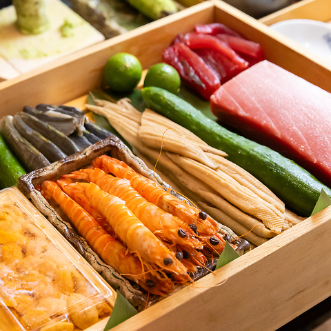 食材を見極め感覚を研ぎ澄まし、ベストな調理法で美味しさを引き出した至高の鮨はまさに技術の光る逸品。心ゆくまでご堪能下さい。カウンターではその臨場感も味わえる特別な空間を演出致します。お料理と共に心温まる特別な時間をお過ごしください。