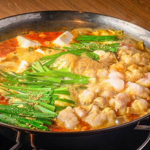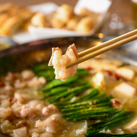 国産牛の豊かな風味や甘みを活かした、特製のもつ鍋をご用意しております。臭みが一切なく、旨みだけをお楽しみいただけるよう丁寧に仕込んでいるもつはジューシーながらも旨みが濃厚です。ワインと一緒にお楽しみいただけるよう、スープにもこだわっております。牛骨から10時間以上旨みを抽出した白湯がおすすめ!
