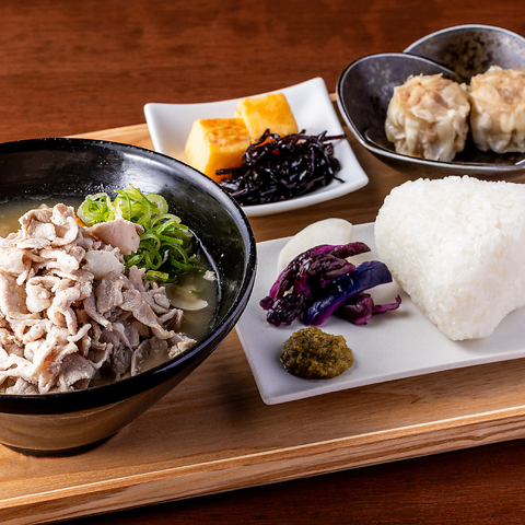 15時までランチ営業しております!鹿児島直送の銘柄豚の旨みと出汁の効いた豚汁は塩むすびとの相性が◎!