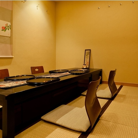 店内は、親しい人と気兼ねなくお食事をお楽しみいただける個室を中心としたつくりです。2つの個室を繋げることで最大16名様の団体予約も対応いたします。