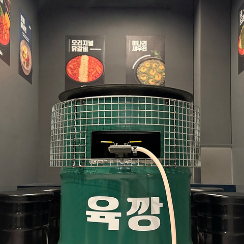 実際に韓国で使われている巨大なドラム缶(カントン)と、釜蓋をモチーフにした大きな鉄板が日本に初上陸!