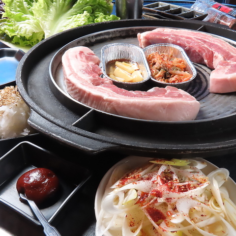 当店自慢のサムギョプサル。お肉の分厚さに、満足度アップすること間違いなし◎食べごたえのある一口は、口の中で肉汁があふれ出し、心もお腹も満たしてくれます。ボリューム満点で、友達とのシェアにもぴったりです。満足感に包まれる瞬間をぜひお楽しみください。