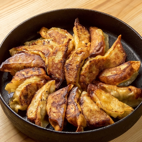 看板メニューの鉄鍋餃子は外はパリッ、中はジューシー★鉄鍋ならではのアツアツ加減がたまらない、老若男女が大好きな一皿です!食欲をそそる美味しそうな焼き目がSNS映えもばっちり◎