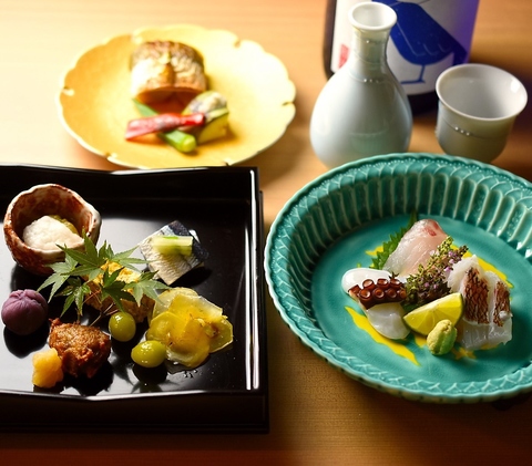 食材の鮮度や質にこだわった満足度の高いコースをご用意。懐石コースでは、獲れたての食材を丁寧に仕立て、御一人様に一皿ずつでの御提供をさせて頂きます。接待や記念日、ハレの日や特別な日使いにピッタリのコースとなっております。見た目の美しさに思わずうっとりとしてしまう、目からも愉しめる内容を是非ご賞味あれ!