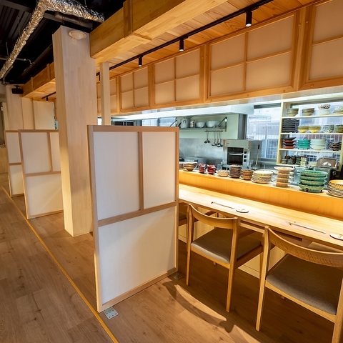 | カウンター | 1名様×8 | 仕切りのあるカウンター席をご用意しました。他のお客様を気にせずゆったりとお寛ぎください。ライブ感のあるカウンターキッチンで調理風景もお楽しみいただけます。 |