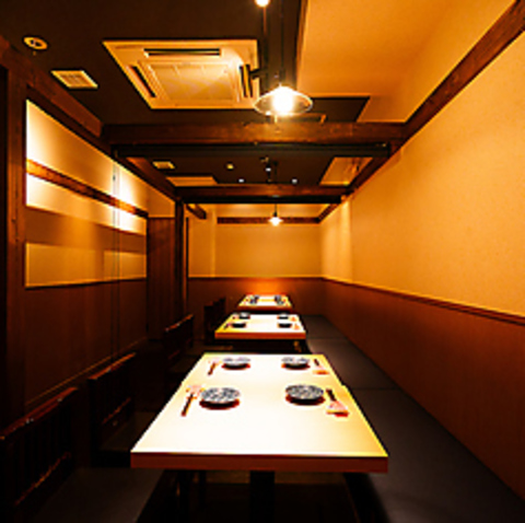 2名様から最大30名様まで対応可能な完全個室を完備しております!周りを気にせず、デートやご友人など大切な方とのプライベートな時間をゆったりお過ごしいただけます。お座敷のお席もあり、足を伸ばしてくつろげるので長時間の宴会でも快適にご利用可能です◎
