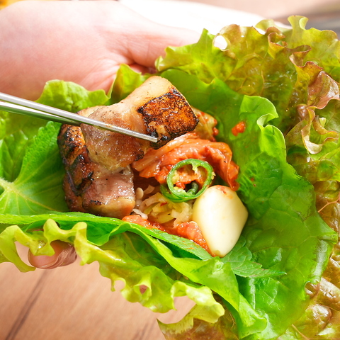 定番メニューもしっかり美味しい!中でもサムギョプサルに使う豚肉は厳選して仕入れており、当店では群馬県産『氷室豚』を使用しており旨味とコクが口に広がる最高の逸品です。