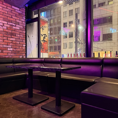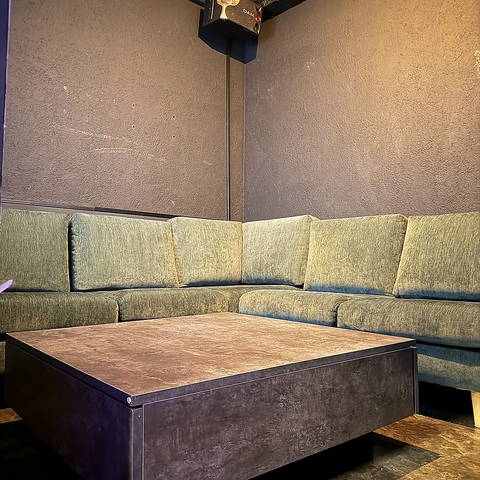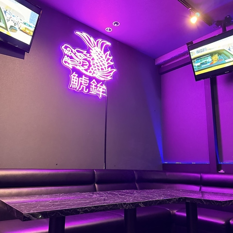 韓国風のネオンインテリアが光る店内は、ラグジュアリーなソファー席が並ぶ大人の憩い場。個室でカラオケやダーツを楽しみながら、2次会や貸切にも対応できるダイニングバーです。