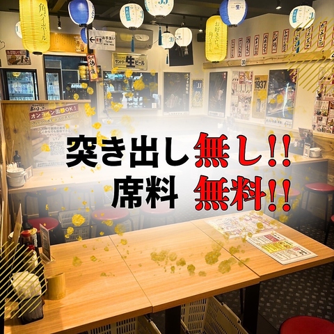 当店ではお通し代、席料はいただきません!おひとり様でもグループでもお気軽にご利用くださいっ♪