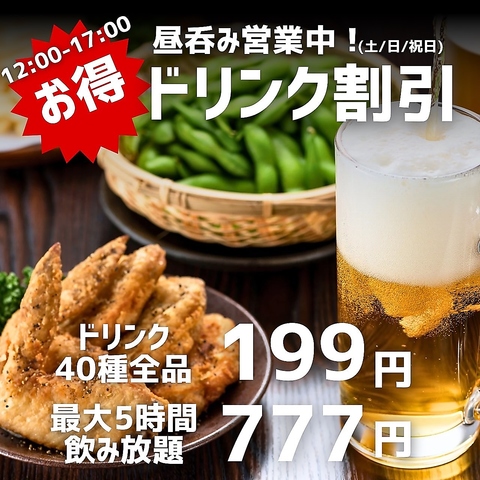 土日祝の昼呑み大歓迎!ドリンク各種199円~♪5時間飲み放題777円♪