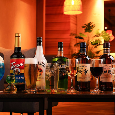 カクテルベースと、コーラ・ジンジャーエール・オレンジジュース・パインジュース・グレープフルーツジュース・ミルク・ウーロン茶・ジャスミン茶・紅茶・ソーダ・トニックウォーターを合わせてお楽しみください!