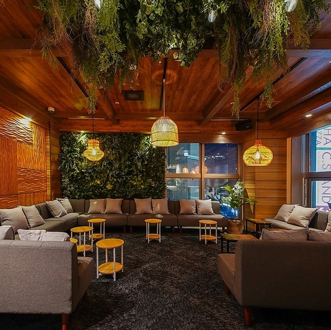 【ボタニカル空間◎】緑鮮やかなウォールグリーンが広がる、都会のオアシスのようなリラックス空間。ふかふかのソファーに身を委ね、友人や大切な人とゆったり語り合えるひとときをご提供します。落ち着いた照明と自然の温もりに包まれて、日常を忘れる至福の時間を過ごしませんか。