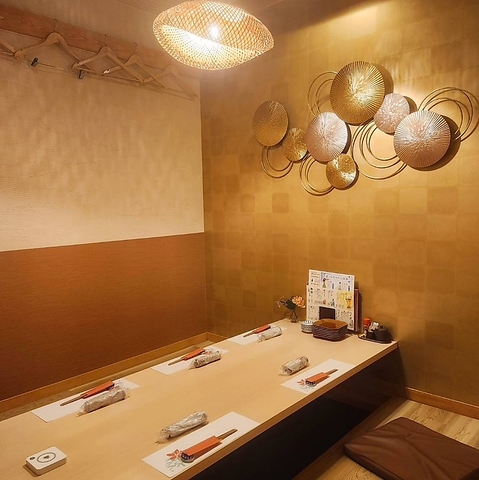 仕切りを外せば8名様でご利用いただける掘りごたつ個室席ご用意しております。接待や会社での飲み会にも最適◎個室ですので安心してご来店ください。