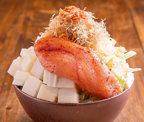 ちからでの人気メニュー!チーズ明太もんじゃ!さらにトッピングも可能なのでご自身のお好みに合わせて味変可能です!
