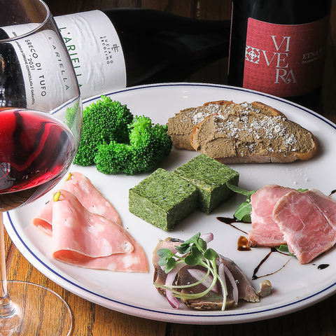「どの料理もワインにぴったり」とシェフが自信を持ってお勧めできるアラカルトメニューもたくさんご用意しております。是非お気軽にシェフにおすすめのペアリングなどお尋ねください。※写真は前菜盛り合わせとなります。