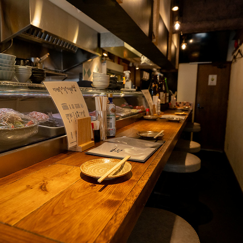 お一人様も大歓迎!料理しているライブ感をたのしめる特等席です。お仕事帰りやデートにもぜひご活用ください。また、おひとり様もゆっくりお過ごしいただけるよう、居心地の良い店内となっておりますよ。