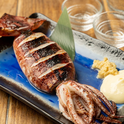 海の恵みを丸ごと堪能!ぷりっとした弾力と、口いっぱいに広がる香ばしい香り…じっくり焼き上げた「いかの丸焼き」は、シンプルだからこそ素材の旨みが引き立つ逸品です。特製の醤油ダレが香ばしく焼け、ジュワッと溢れる旨味はまさに絶品!
