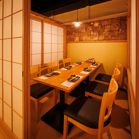 完全個室のお席で周りを気にせずにリラックスしたひとときをお過ごしいただけます。デートや大切な会話、仕事の打ち合わせにも最適な空間で、落ち着いた雰囲気の中でお料理を楽しんでいただけます。プライバシーを守りながら、静かな時間を満喫できるのが当店の特長。デザインにもこだわり、落ち着きのある空間でお客様をお迎えいたします。
