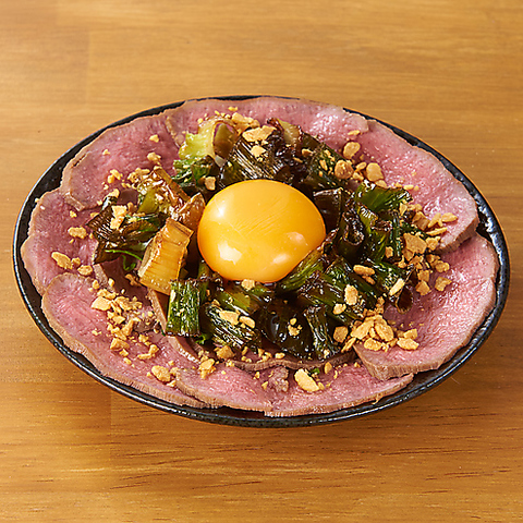 低温調理で丁寧に仕上げたしっとり牛タンに、新鮮な野菜を合わせた贅沢ユッケ。特製だれと卵黄を絡めれば、一口ごとに“幸せ”が広がる人気メニューです♪立ち飲みでもしっかりごちそう感があって、ちょっといいものを食べたい日の一皿にぴったり。最初から最後まで満足できるおすすめの一品!