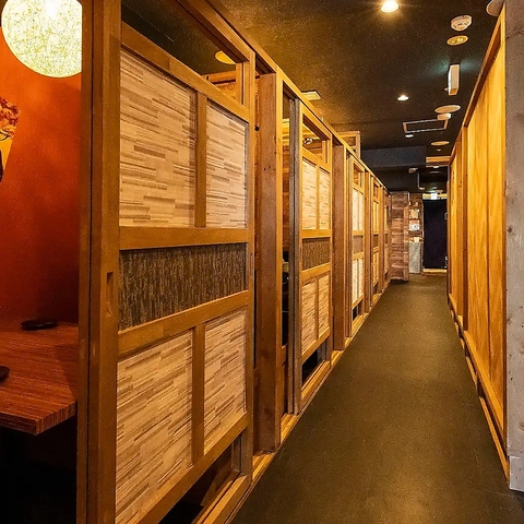 完全個室は2名様からご用意しております。間接照明と和の装飾の数々が洗練された大人な空間を演出しております!扉付きとなっておりますので周りを気にせずお楽しみいただけますよ!当店でゆっくりと羽を伸ばしてご寛ぎくださいませ♪